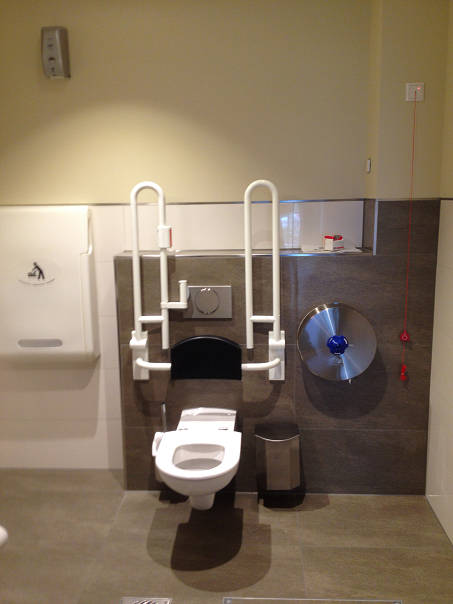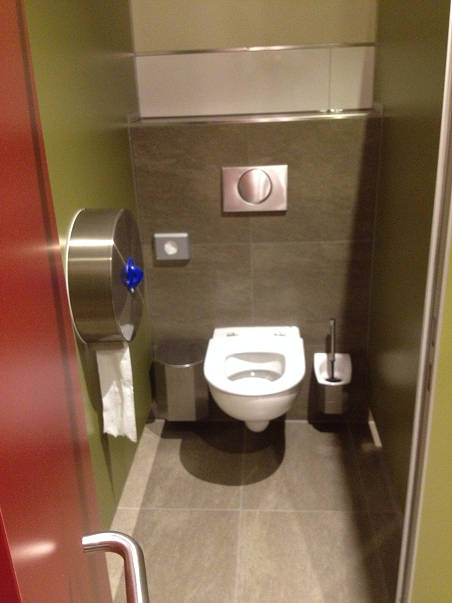 Die fertig montierten Toilettenanlage Links Damen WC, Rechts Behinderten WC